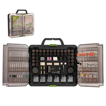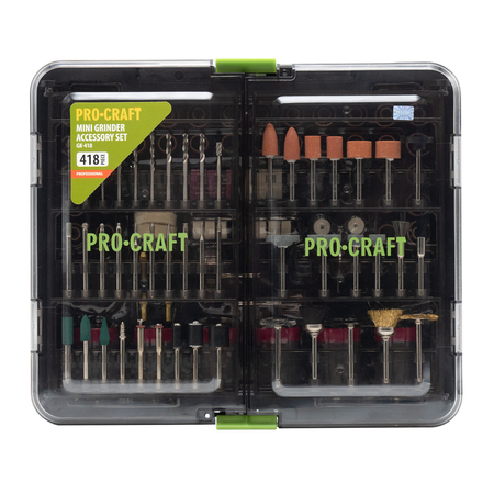 Набір насадок для гравера Procraft GK418 - це набір, який включає в себе різноманітні насадки (біти, різці тощо), які використовуються для різання, гравірування, фрезерування та інших видів обробки різноманітних матеріалів. Цей набір може містити різні типи насадок з різними формами та розмірами, призначені для використання в граверу або іншому пристрої для обробки поверхонь. Зазвичай такі набори містять насадки різних конфігурацій, що дозволяє проводити різноманітні види робіт з обробки матеріалів, такі як метал, дерево, скло, пластик тощо.