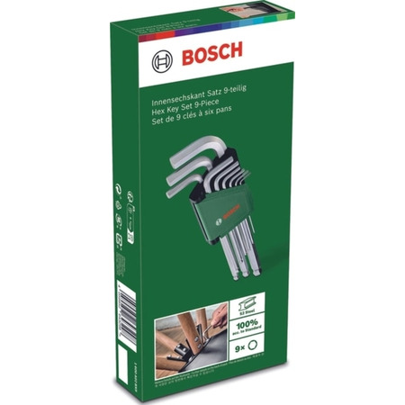 Набір шестигранних ключів Bosch, 9 штук з кодом товару 1.600.A03.2V1, є незаміним для виконання різноманітних ремонтних, монтажних та будівельних робіт. Цей набір включає 9 різних розмірів шестигранних ключів, які допоможуть вам змонтавити меблі, здійснити ремонт та обслуговування різних пристроїв і устаткування. Шестигранні ключі зазвичай використовуються для викручування болтів та гвинтів з шестигранною головкою і є важливим інструментом для будь-якого майстра або домашнього користувача.