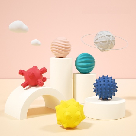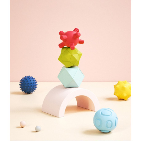 Мячики можно грызть и использовать, как прорезыватель для зубов. Текстурная поверхность развивает тактильные ощущения. Игра с шарами развивает мелкую моторику, а объемные фигуры заставят ребенка рассматривать детали и фокусировать зрение.