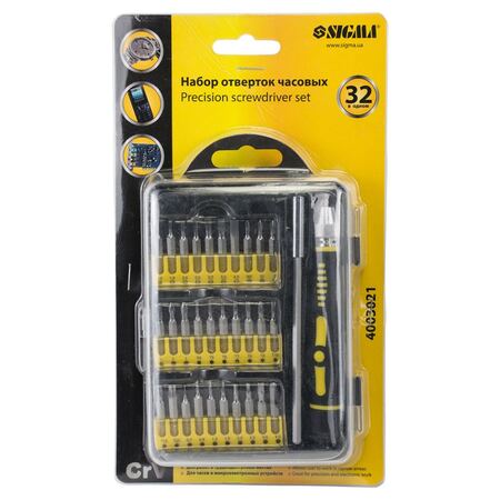 Набір викруток годинникових з подовжувачем 30в1 CrV (кейс) SIGMA (4003021) - це набір інструментів, спеціально призначений для ремонту годинників та годинних механізмів. В наборі включені 30 різних насадок для годинникових викруток, які дозволяють пристосуватися до різних типів гвинтів та кріплень, які використовуються в годинниках. Також у наборі є подовжувач, що дозволяє зручно викручувати гвинти на глибині чи у важкодоступних місцях.
