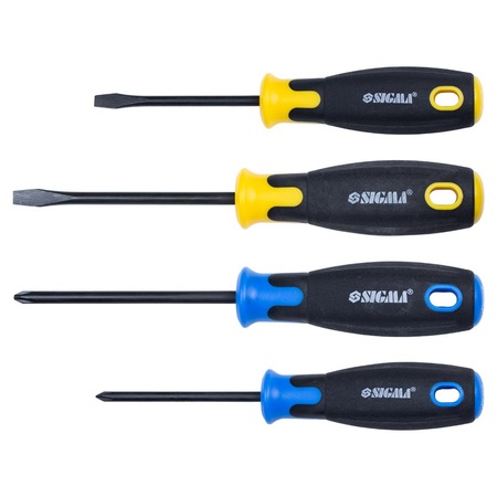 Набір викруток воронованих 4шт CrV SIGMA (4007651) - для загвинчування і відгвинчування кріпильних виробів з різьбленням. Ергономічне руків'я, виготовлене з деревної стружки і полімеру, зручно лежить у руці, не прослизає під час закручування і має підвищену міцність до механічних впливів.