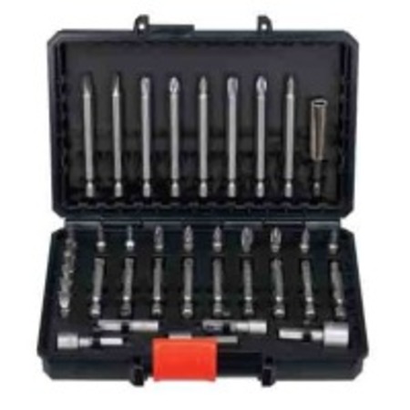 38 шт. Біти викрутки 25 мм - SL4, SL5, SL6, PH0, PH1, PH2, PH3, Pz1, Pz2, Pz3, Тx10, Тx15, Тx20, Тx25, Тx30. Біти викрутки 50 мм - SL4, SL5, SL6, PH1, PH2, PH3, Pz1, Pz2, Pz3. Біти викрутки 75 мм - SL4, SL6, PH1, PH2, PH3, Pz1, Pz2, Pz3. Магнітний тримач