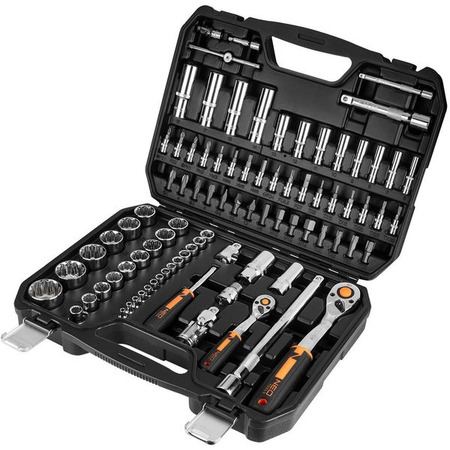 Набор инструмента Neo Tools, Набор торцевых головок, 86шт, 1/2", 1/4", CrV, кейс