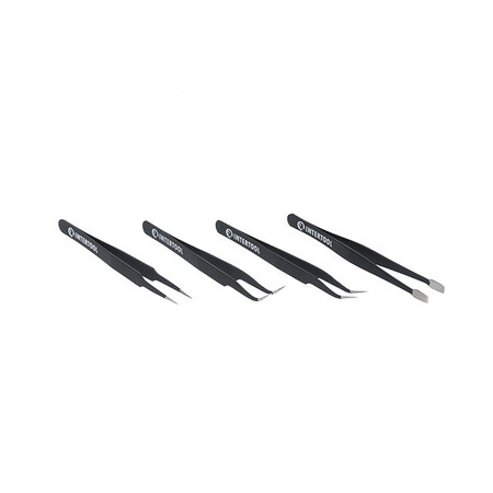 У наборі чотири пінцети з різною формою робочих наконечників для виконання різних завдань: