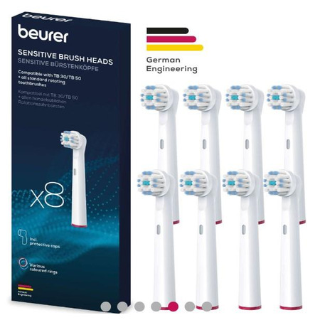 Насадки для зубних щіток Beurer TB_30/50_S_8 призначені для заміни старих насадок або для використання зі зубними щітками Beurer. У комплекті поставляється 8 насадок, що забезпечує тривале використання без необхідності частої покупки запасних насадок. Кожна насадка має спеціально розроблений дизайн, який дозволяє ефективно очищати зуби та доглядати за ясенами. Вони забезпечують додатковий масаж ясен та допомагають у видаленні нальоту та забруднень з поверхні зубів. Насадки дозволять підтримувати оптимальний стан гігієни порожнини рота та забезпечать ефективне очищення зубів та ясен.
