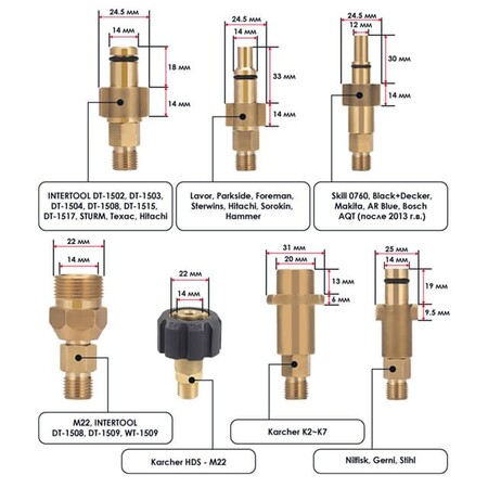 Насадки-перехідники виготовлені з латуні, металу, який не схильний до корозії, зносостійкий та довговічний, має підвищений ресурс роботи.