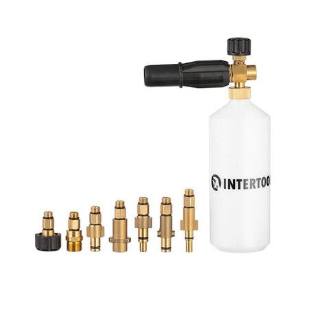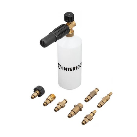 Якщо мийка високого тиску з комплектною насадкою погано пінить мийний засіб, у цьому випадку не обійтися без спеціального піногенератора. Насадка INTERTOOL DT-1536 універсальна та підходить до різних брендів мийок високого тиску. За її допомогою ви ефективно очистите бруд з автомобілів, килимових покриттів, панелей будинку тощо.