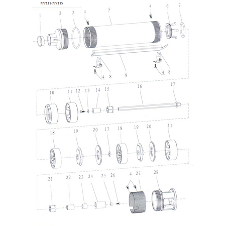 - Вал насосної частини: нержавіюча сталь AISI 304;