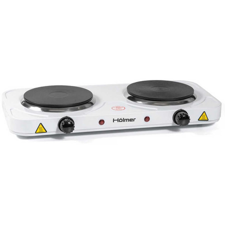 Мощная, компактная и удобная – это настольная электроплита Holmer HHP-220W. Данная модель выполнена в классическом белом цвете, с двумя чугунными конфорками. Имеет функцию защиты от перегрева, механический регулятор температуры (5 режимов) и общую потребляемую мощность 2000Вт. Плита HHP-220W – отличный вариант для небольшого кухонного пространства.