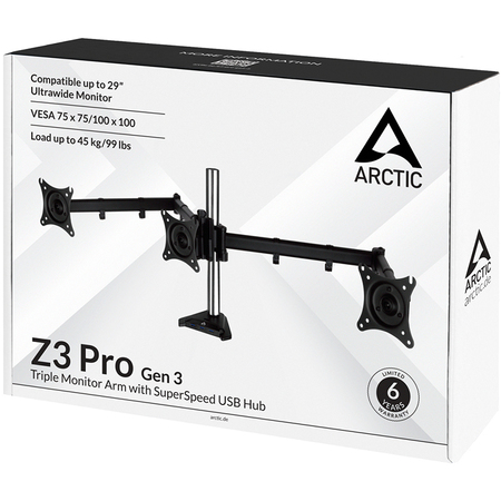 Кронштейн для монитора ARCTIC Z3 Pro (Gen 3) с легкостью поддерживает новейшие ультраширокие мониторы (до 29 дюймов). Классические мониторы 16:9 также совместимы (до 32 дюймов). Z3 Pro (Gen 3) поддерживает мониторы весом 15 кг на кронштейн.