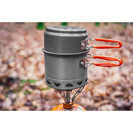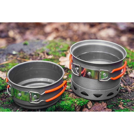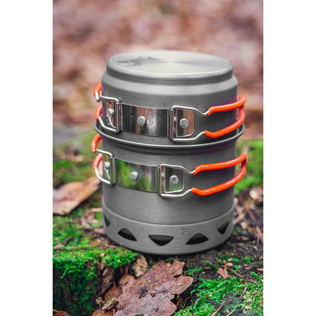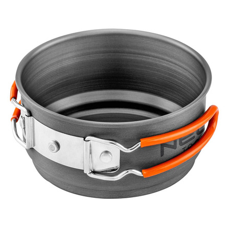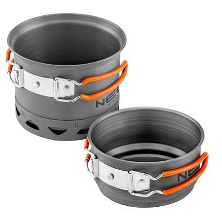 Набор кастрюль 2 в 1 с теплоотводом 63-144 от NEO включает в себя кастрюлю с теплоотводом, защищающим ее от ветра и увеличивающим функциональность на 30%, и практичную сковороду. Объем кастрюли составляет 0,9 литра, высота - 100 мм, диаметр - 132 мм. Емкость сковороды - 0,5 л, высота - 125 мм, диаметр - 60 мм. Компоненты изготовлены из анодированного алюминия, что обеспечивает высокую прочность и малый вес. Вес всего набора составляет всего 268 г. Кастрюли оснащены складными изолированными ручками. У них также есть действующий сертификат LFGB об утверждении контакта с пищевыми продуктами. Это изделие отлично подойдет для поездок за город и походов. К нему прилагается практичная дорожная сумка.
