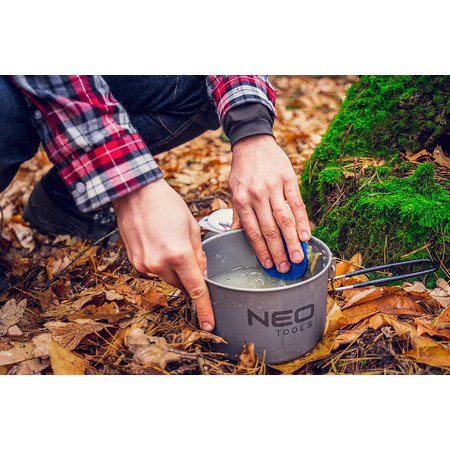 Туристическая посуда 7-в-1 NEO 63-146 - это кастрюля, сковорода, 2x тарелки, половник, лопатка и губка, предназначенные для кемпинга и поездок на природу. Набор весит всего 420 г, благодаря использованию прочных и легких материалов - анодированного алюминия и пластика. Посуда одобрена LFGB для контакта с пищевыми продуктами. Они также оснащены складными практичными изолированными ручками. Емкость кастрюли составляет 1 л, диаметр - 150 мм, высота - 75 мм. Сковорода объемом 0,6 литра имеет высоту 37 мм и диаметр 155 мм. Это отличный ассортимент туристической посуды от бренда NEO для различных экспедиций.