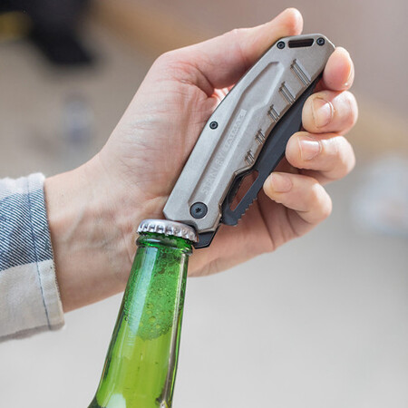 Предназначен для интенсивного использования. Запасные лезвия с зубчатой и гладкой режущей кромкой для разных материалов. Тонкий, легкий алюминиевый корпус для дополнительного комфорта. Лезвие из нержавеющей стали для большей прочности. С блокировкой листа. Легко открыть. Встроенный открывалка для бутылок.