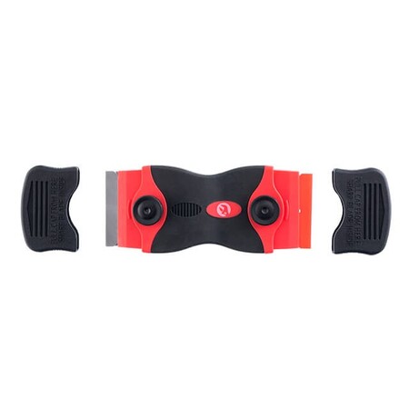 На обох торцях інструмента розташовані змінні леза, пластикове та сталеве. Ширина робочої частини становить – 40 мм. Обидва леза надійно захищені ковпачками, що унеможливлює пошкодження під час зберігання та транспортування ножа-скребка. У комплекті також поставляється по 10 запасних лез кожного виду.