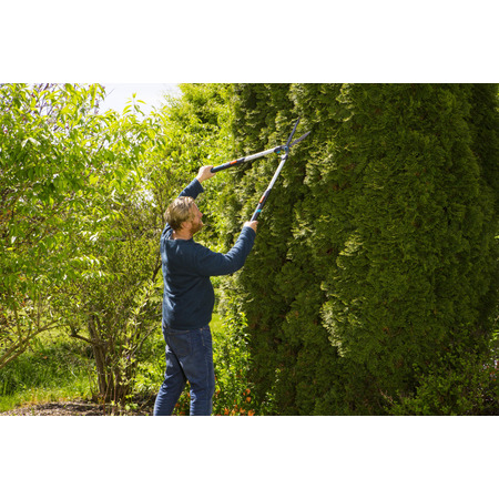 Телескопические ножницы для живой изгороди Gardena TeleCut обеспечат быструю и эффективную подрезку как живой изгороди, так и зеленых ветвей на высоте до 2,80 м.