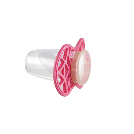 Ортодонтическая пустышка Air55 Cool, которая светиться в темноте. Пластинка соски на 55% состоит из воздуха обеспечивая почти полную аэрацию области вокруг рта, избегая скопления слюны, которая может раздражать кожу. Защитный колпачок для соски для поддержания чистоты соски и стерилизации в микроволновой печи простым добавлением воды.