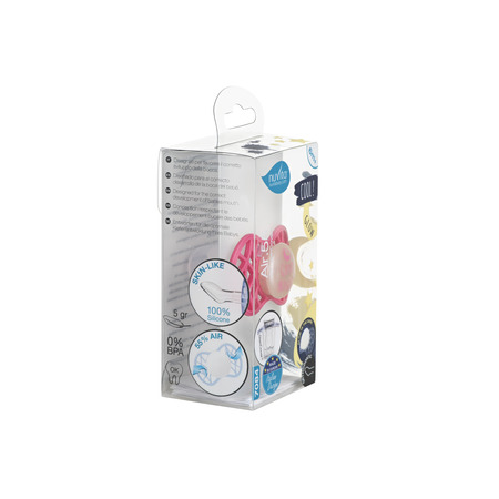 Усі пустушки Nuvita важать лише 7 грамів та на 55% складаються з повітря. Цього вдалося досягти завдяки продуманому дизайну та інноваційній формі, особливістю якої є те, що вся надгубна частина пронизана отворами для кращої вентиляції шкіри дитини навколо ротика. Це запобігає виникненню можливих попрілостей через збільшене слиновиділення, що є актуальним під час прорізування зубів.