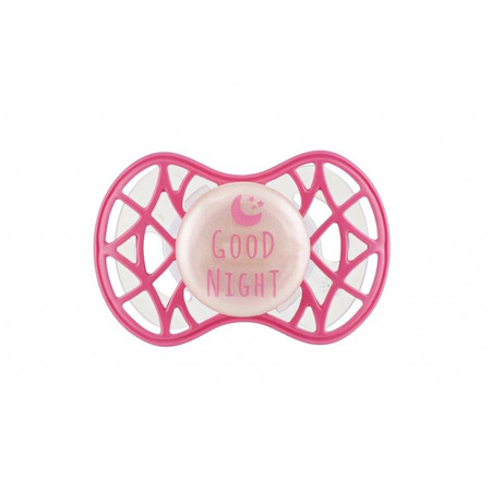Симметрическая пустышка Air55 Cool, которая светится в темноте. Пластинка соски на 55% состоит из воздуха обеспечивая почти полную аэрацию области вокруг рта, избегая скопления слюны, которая может раздражать кожу. Защитный колпачок для соски для поддержания чистоты соски и стерилизации в микроволновой печи простым добавлением воды.