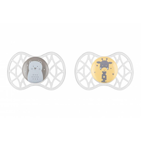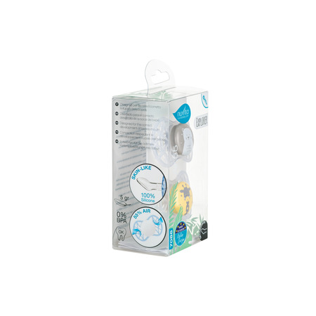 Пустышка Nuvita NV7086 Air55 Explore ортодонтическая 6m+ (мишка, жираф). Пластинка соски на 55% состоит из воздуха обеспечивая почти полную аэрацию области вокруг рта, избегая скопления слюны, которая может раздражать кожу.