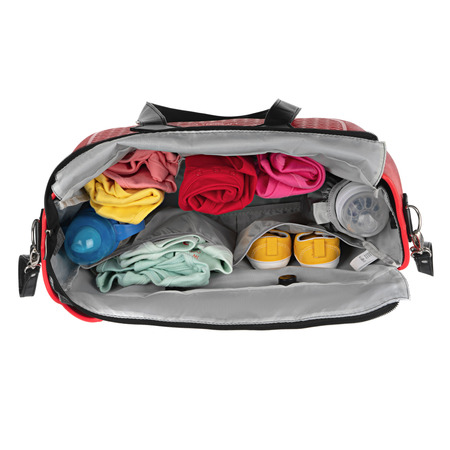 Внутренняя часть для мам, которая является вместительным органайзером и имеет 7 отделений (одно из которых - термокарман), что позволяет легко разместить, а потом и найти в сумке все необходимое. В комплект входит коврик для смены подгузников. Внутренняя часть изготовлена из полиэстера с сетчатыми, резиновыми и полиэтиленовыми вставками, коврик для смены подгузников - из полиэстера с мягким наполнителем, можно гладить.