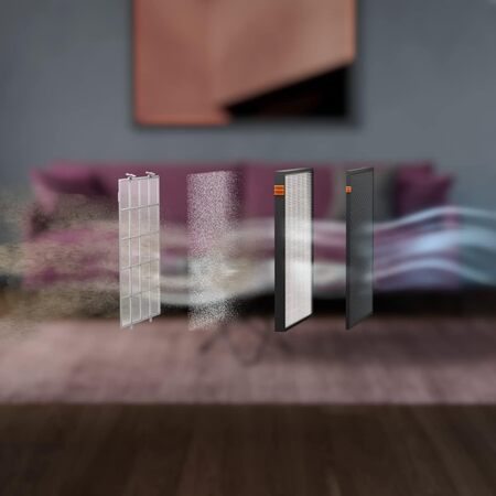 Передовая 4-ступенчатая система фильтрации обеспечивает высокий уровень очистки воздуха. Сочетание предыдущего фильтра, HEPA-фильтра, антибактериального слоя и активированного угля позволяет задерживать до 99,97% мельчайших частиц размером до 0,3 микрона. Эта технология эффективно нейтрализует домашнюю пыль, продукты жизнедеятельности животных, пыльцу и другие аллергены, создавая идеальные условия для людей, страдающих аллергией или астмой. Кроме того, очиститель уничтожает 99,99% бактерий и фильтрует 99% вирусов, передаваемых воздушно-капельным путем, защищая вас и вашу семью от опасных микроорганизмов.