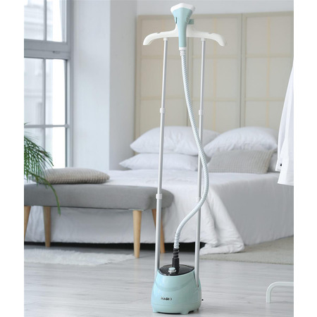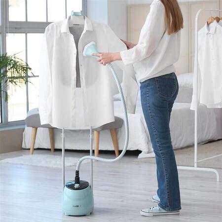 Стационарный отпариватель MG-331 – это современное устройство, позволяющее гладить одежду и домашний текстиль, не тратя много усилий. Также он быстро и эффективно позволит обработать горячим паром одежду, очищая и дезинфицируя ее. Имеет как горизонтальное, так и вертикальное отпаривание. Отпарителем невозможно повредить даже тончайшую и капризную ткань – ни синтетическую, ни натуральную. Изделие контактирует только с паром, температура которого составляет 104°С. Прибор состоит из парогенератора и резервуара с водой объемом 1,8 литра. Мощность составляет 1800 Вт, что является залогом высокой скорости глажения. Отпариватель обладает современным мобильным дизайном с колесами, что обеспечивает комфортное и легкое передвижение прибора по квартире. Производительность подачи пара составляет 35 грамм в минуту, что позволяет разгладить даже самые сложные складки. В комплекте есть доска для отпаривания, вешалка и термозащитная перчатка. Стационарный отпариватель с таким набором возможностей значительно облегчит жизнь, особенно если в доме дети.