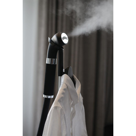Элегантный дизайн с покрытием black soft touch и фиксированная штанга подчеркивают стиль устройства. Отсутствие колесиков делает отпариватель устойчивым и компактным, а гарантия на 2 года обеспечивает уверенность в надежности прибора