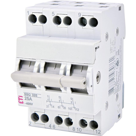 Модульный переключатель нагрузки SSQ I-0-II (сеть-генератор) обеспечивает простое и надежное переключение источников питания в случае аварийных ситуаций (например, отключение электроэнергии). Он предназначен для установки в распределительные щиты. Такой рубильник не имеет теплового и электромагнитного расцепителя (не защищают от токов короткого замыкания и перегрузок). Возможна пломбировка в положении (I) и (II). Продукция компании ETI отлично проявляет себя в эксплуатации, ее качество подтверждается наличием международных сертификатов и наград.