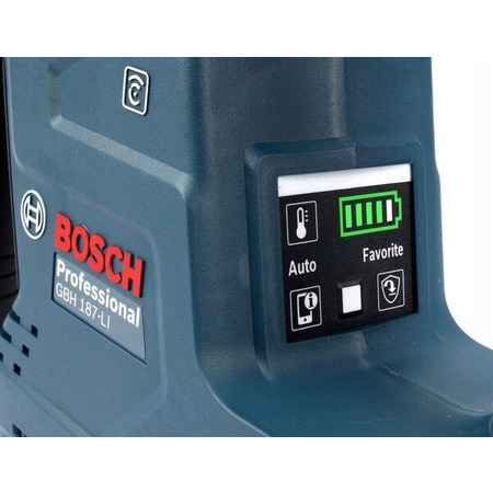 GBH 187-LI Professional – чемпион по эффективности, когда речь идет о скорости сверления и количестве отверстий на одном заряде аккумулятора благодаря безщеточному двигателю и оптимизированному механизму. Функция постоянной скорости постоянно поддерживает скорость сверления. Аккумуляторный перфоратор удобнее держать в руке благодаря L-образной форме. Он предлагает такие функции, как контроль вибрации и контроль отдачи для работы с отличным соотношением цены и качества. Легко читаемый дисплей отображает уровень заряда аккумулятора.
