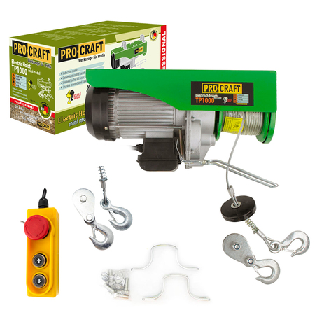 Підйомник (тельфер) Procraft TP1000 - це високоякісний обладнання для підйому важких вантажів. Основні характеристики та особливості цього підйомника можуть включати:
