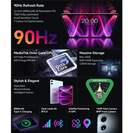Планшет Teclast T60Plus 12” FHD / 6GB / 128GB / G88 / 8000mAh / LTE / 8+13Mp / Metal / Gray