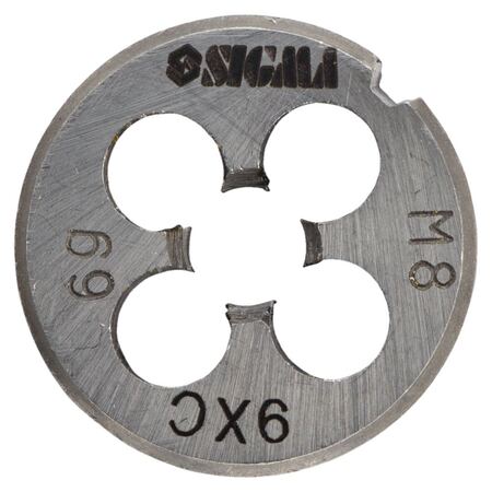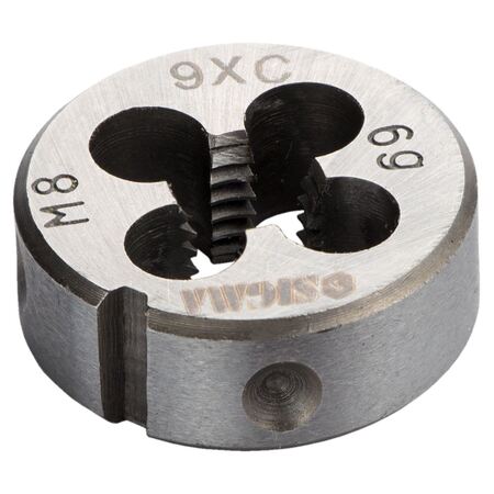 Плашка М8×1.25мм SIGMA (1604211) призначена для нарізування або калібрування зовнішніх різьб. Для роботи закріплюються в тримачах для плашок зі стопорними гвинтами. Для фіксації на зовнішньому циліндрі плашки існують конічні поглиблення і кутовий паз. При нарізанні, різьблення, попередньо, змащують консистентним мастилом.