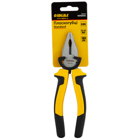 Плоскогубці 180мм Standard SIGMA (4342031) призначені для затиску деталей при обробці, обтиску з’єднувачів (клем) на проводах за умови відсутністю спеціального інструменту, захвата розжарених предметів.