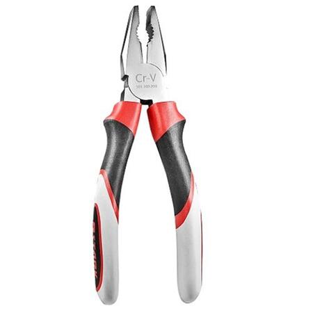 Stark 200mm – плоскогубцы комбинированные для строительного, монтажного, ремонтного применения. Обеспечивают надежный зажим, а также захват для загибания/выравнивания металлических деталей, проволоки и пр. Общая длина инструмента – 20 см.