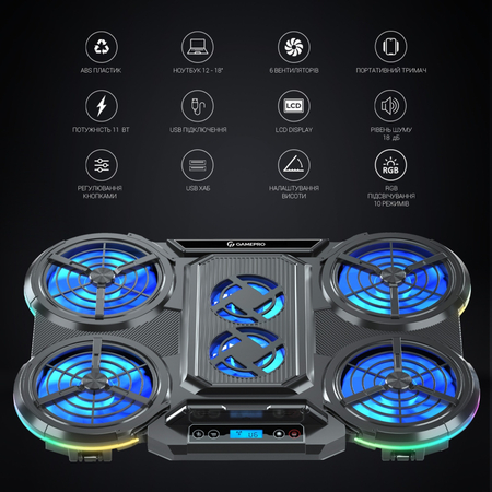 Наш продукт также оснащен LCD-дисплеем, который отображает информацию о температуре, чтобы вы всегда имели под контролем работу системы охлаждения. Дополнительным бонусом является держатель для смартфона, который делает эту подставку не только функциональной, но и практичной для вас.
