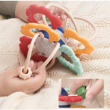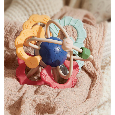 Ребенку будет удобно держать и грызть ее со всех сторон. Текстурная поверхность развивает тактильные ощущения. Игра развивает мелкую моторику, разные формы привлекут внимание.