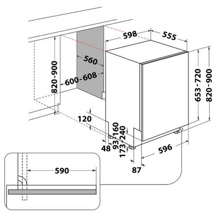 *Порівняно із моделями посудомийних машин Whirlpool зі стандартним баком. Під додатковим простором розуміється збільшення загального простору між трьома кошиками.