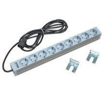Блок розеток 19" 1U 9 разъемов SCHUKO, 230В, 10А, длина провода 3 м с вилкой С14, алюминиевый анодированный корпус.