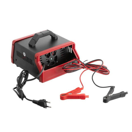Зарядний пристрій має повністю ізольовані клеми та зручну ручку для транспортування. Амперметр відображає силу струму батареї для контролю заряду. Для компактного зберігання, на звороті пристрою розташовується спеціальний відсік для зберігання мережного кабелю та клем. Дуже простий у використанні зарядний пристрій, проте рекомендуємо заряджати у провітрюваному приміщенні та не залишати без нагляду під час заряджання.