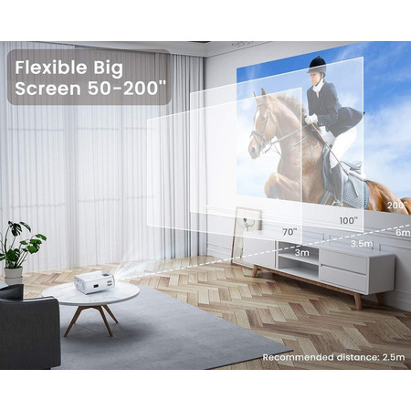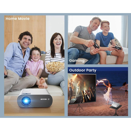 Проектор WiMiUS K5 має яскравість 6000 лм, максимальну роздільну здатність 1920x1080P, високий коефіцієнт контрастності 9000:1 і широкий діапазон кольорів, що забезпечує точність оригінального відео. Завдяки функції віддзеркалення через Wi-Fi ви можете бездротовим способом під’єднати цей портативний проектор до телефонів з iOS та Android і ноутбуків, щоб насолоджуватися іграми на вулиці чи переглядом фільмів. Вбудована функція Bluetooth дозволяє в будь-який час бездротово підключати колонки та навушники Bluetooth. Цей проектор із підтримкою 1080p може запропонувати великий розмір проекції від 50 до 200 дюймів із відстанню від 1.2 до 6 м, дозволяючи вам насолоджуватися кіновечорами з родиною чи друзями на великому екрані. Крім того, ви можете регулювати або зменшувати розмір зображення за допомогою функції масштабування 75%-100%. Також можна повертати зображення, коли проектор кріпиться на стелі. Багатоінтерфейсний проектор. На додаток до Wi-Fi з’єднання цей портативний проектор має різноманітні інтерфейси, такі як USB, HDMI, AV, 3.5 мм аудіо.