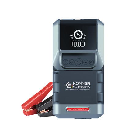 Портативний пуско-зарядний пристрій Konner&Sohnen KS JSP-1300 — це універсальний помічник для автомобіля, що поєднує функції стартера, павербанка, компресора та ліхтаря. Завдяки ємності 16000 мА·год і літій-іонному акумулятору, він може запускати двигуни авто, мотоциклів і навіть човнів. Пристрій оснащено USB-виходами для заряджання гаджетів, вбудованим LED-ліхтарем та компресором для підкачування шин. Вага всього 1.35 кг, компактні розміри і кейс для зберігання роблять його зручним у дорозі, на природі чи в екстрених ситуаціях.