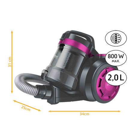 Пылесос First FA-5547-4-PU - незаменимый помощник в поддержании идеальной чистоты в доме. Эта модель имеет в комплекте циклонную систему фильтрации, 2-литровый пылесборник, металлическую телескопическую трубку с рабочей высотой до 116 см, щетки для твердых полов и ковров, всасывающий шланг длиной 150 см, автоматическое намотивание сетевого шнура длиной 480 см, фильтр на входе и выходе воздуха (HEPA), аксессуары: 2-функциональная щелевая насадка.