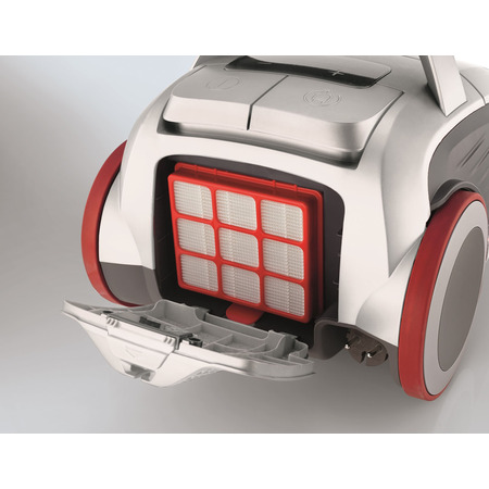 Резиновые колеса предотвращают повреждение нежных полов и обеспечивают надежное сцепление. Пылесос не оставляет следов и царапин во время движения по гладким или шероховатым поверхностям.
