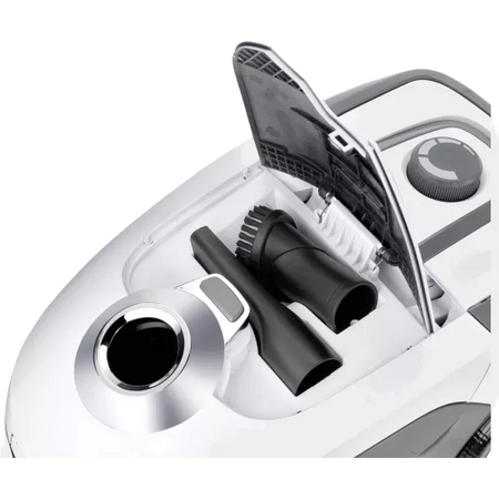 Белый пылесос VC 2 - эффективно и экологично убирает пол и ковры, а также легко справляется с узкими щелями, углами и другими труднодоступными местами. Благодаря удобной системе мешков для пыли, вы можете легко утилизировать полные мешки без контакта с грязью. Практическая система хранения аксессуаров гарантирует, что ни один аксессуар не будет потерян. Идеально вписывается в современный интерьер благодаря стильному дизайну и компактным размерам. Пылесос оснащен фильтром HEPA 13, который очищает воздух до 99,95% от пыли и аллергенов. Мешковый пылесос удобен в использовании, характеризуется низким уровнем шума.