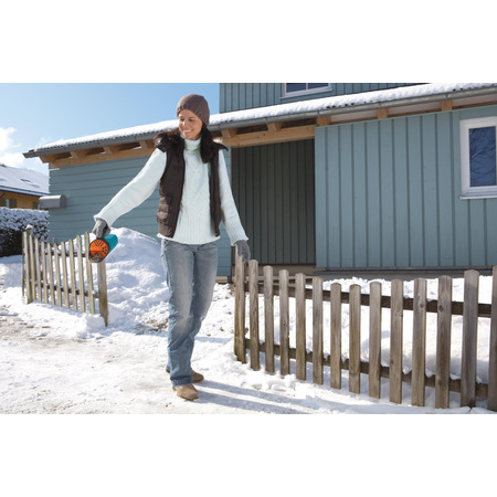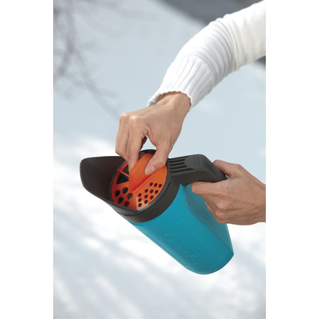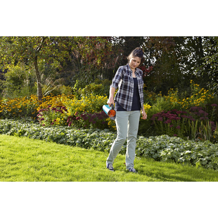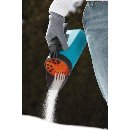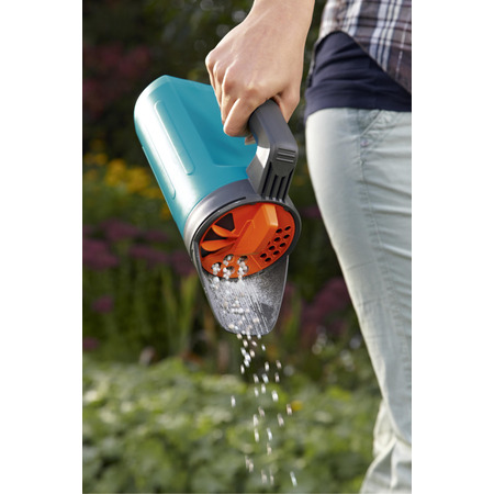 Разбрасыватель ручной GARDENA S – компактный инструмент для равномерного разбрасывания гравия, соли, песка, гранулированных удобрений, семян. Емкость контейнера составляет 1,2 л, но модель может вмещать примерно 1,7 кг песка или 1,4 кг соли, или гравия 1,65 кг, или 1,3 кг удобрений.