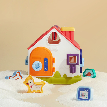 Детский развивающий домик-сортировщик. Красочные цвета и забавная форма домика точно привлекут внимание ребенка, заставляя его разложить фигурки по соответствующим ячейкам. Развивает мышление и координацию движений, концентрирует внимание.