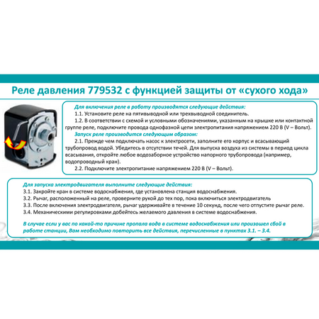 Запуск і зупинка насоса автоматично в залежності від тиску;