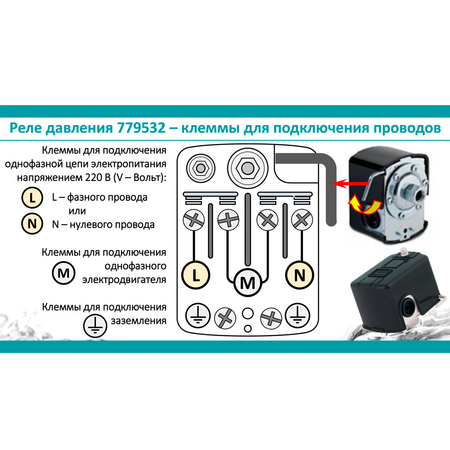 Реле тиску застосовується в автоматичних системах водопостачання, робочим середовищем яких, є вода. За принципом дії пристрій являє собою двоконтактне реле комутації електричних ланцюгів, що спрацьовує при досягненні відповідних значень тиску води.