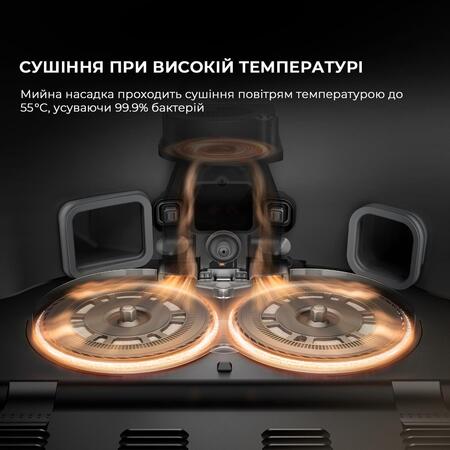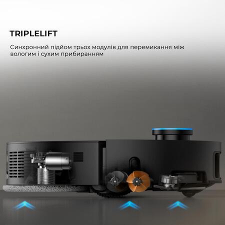 Используйте систему тройного подъема пылесоса, одновременно поднимающую боковую щетку, моечные насадки и основную, обеспечивая полное отделение сухой и влажной уборки. Эта функция повышает эффективность уборки, которая плавно двигается по сложным поверхностям и преодолевает препятствия.