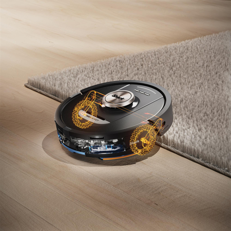 Shark PowerDetect NeverTouch Pro 2-в-1 – это робот-пылесос и мойщик, который тщательно очищает все типы полов благодаря интеллектуальным технологиям уборки, а затем возвращается на большую автоматическую базу NeverTouch, где автоматически опорожняет мусор, пополняет резервуар водой и очищает насадку для мытья – все готово к следующему запуску.